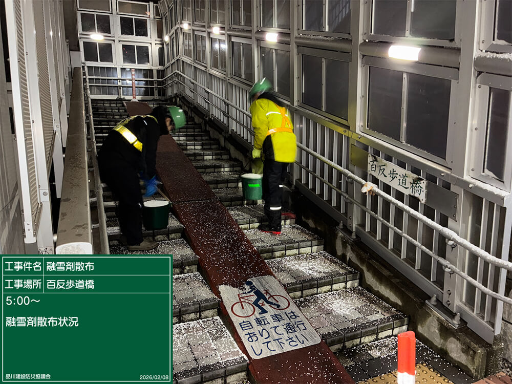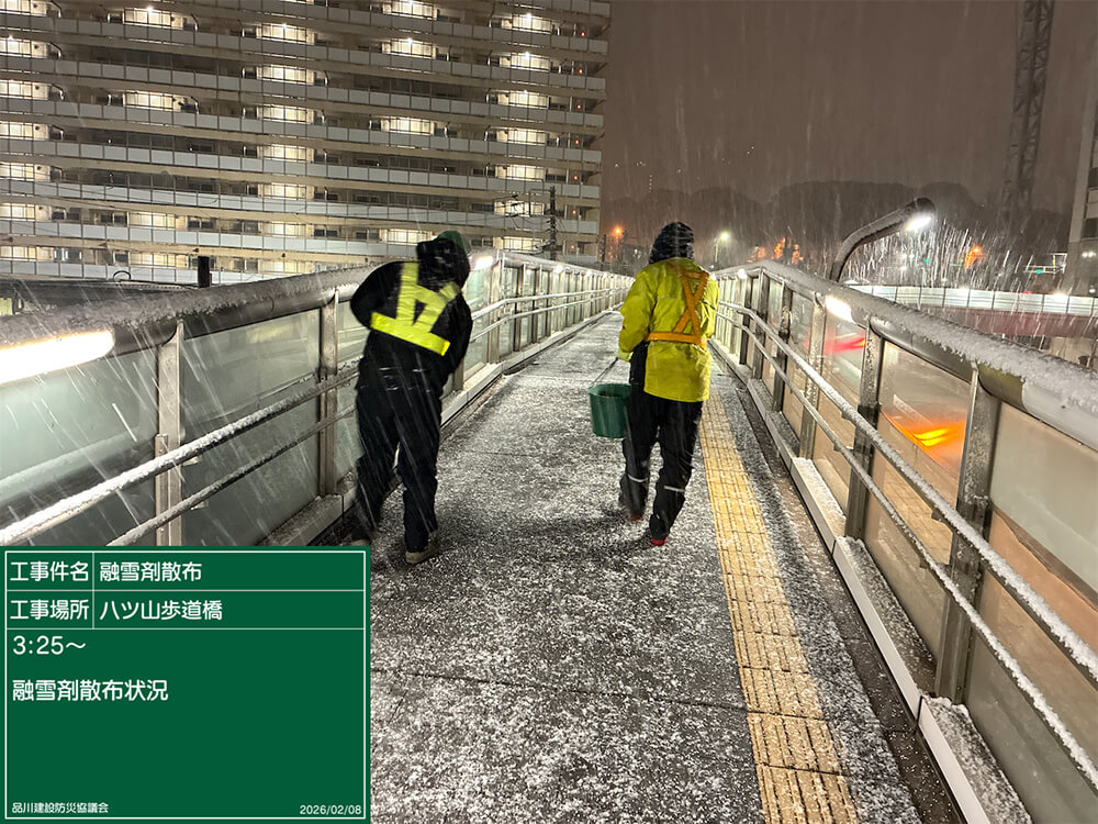 令和8年2月7日(土)から翌日2月8日(日)にかけての積雪に伴い、積雪・凍結に対する緊急対応のため、品川区の要請により出動しました。